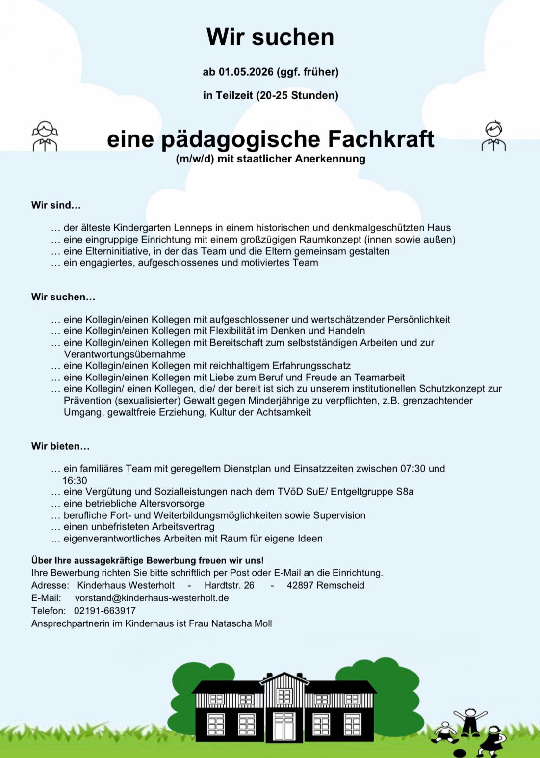 Wir suchen eine pädagogische Fachkraft (m/w/d).
